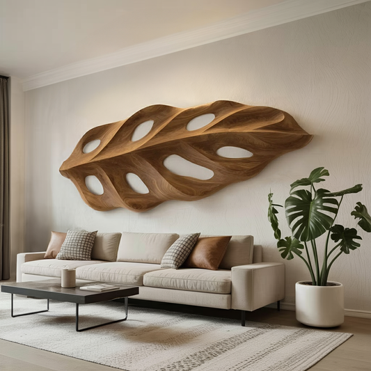 Organic Wall Art With Leaf Panel Design For Living Room