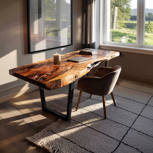 Modern Wooden Live Edge Desk For Small Home Office Setup
