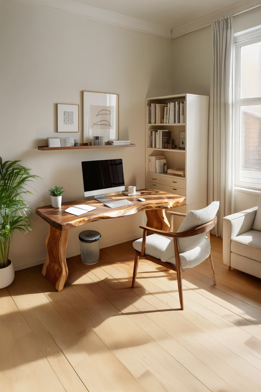 Modern Live Edge Office Desk With Drawer Storage For Workspace