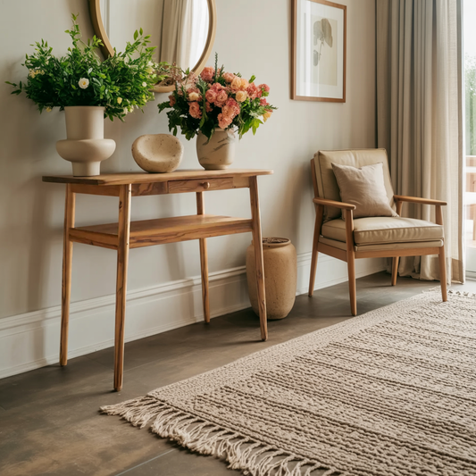 Modern Minimalist Wood Writing Desk With Drawer For Home Office Or Entryway