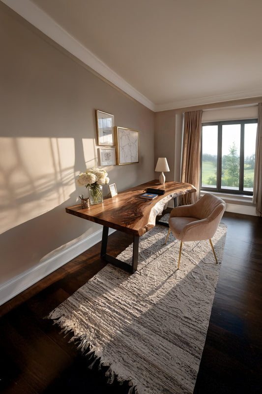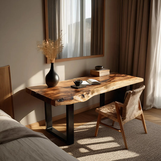 Handcrafted Wooden Live Edge Desk For Living Room Interior
