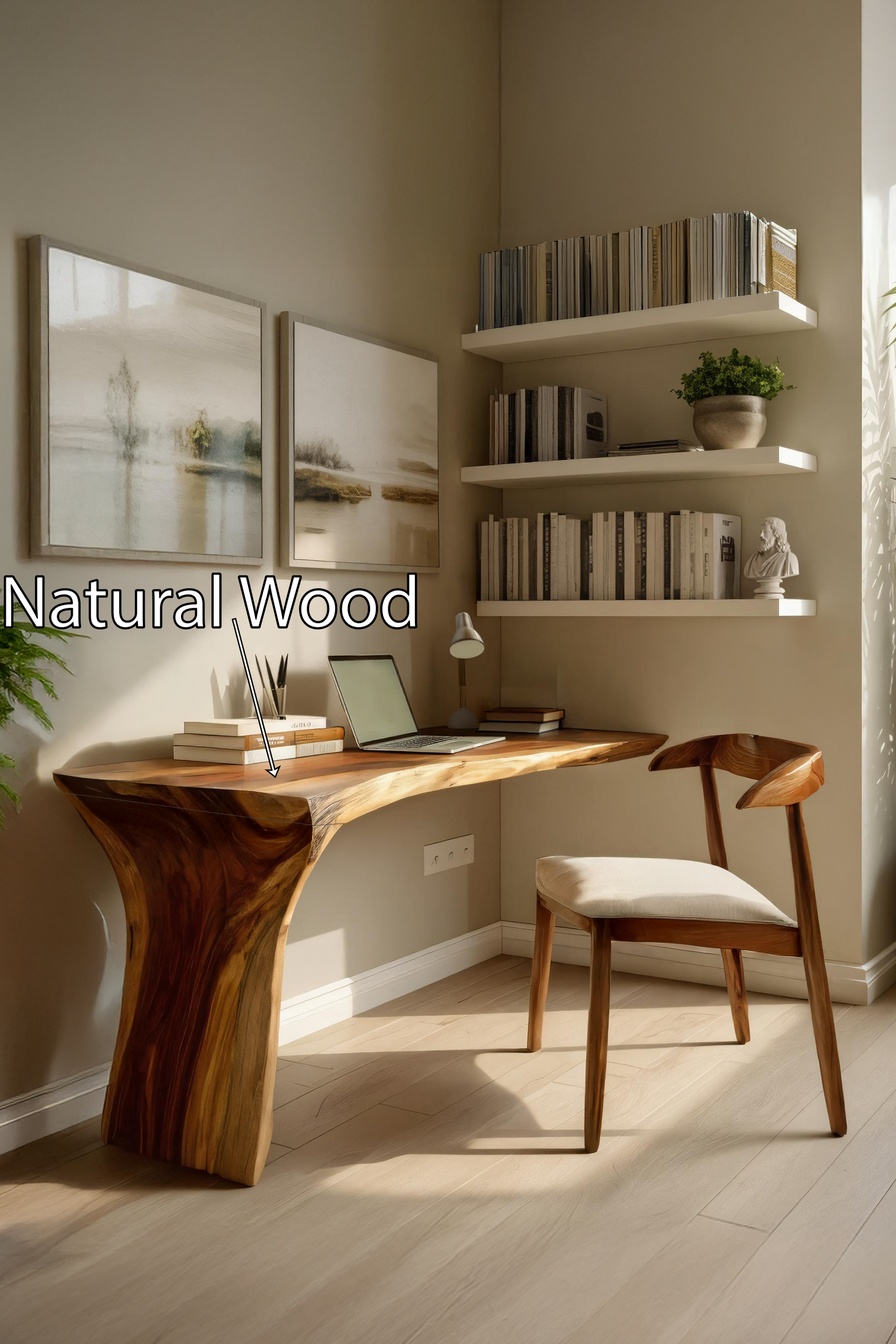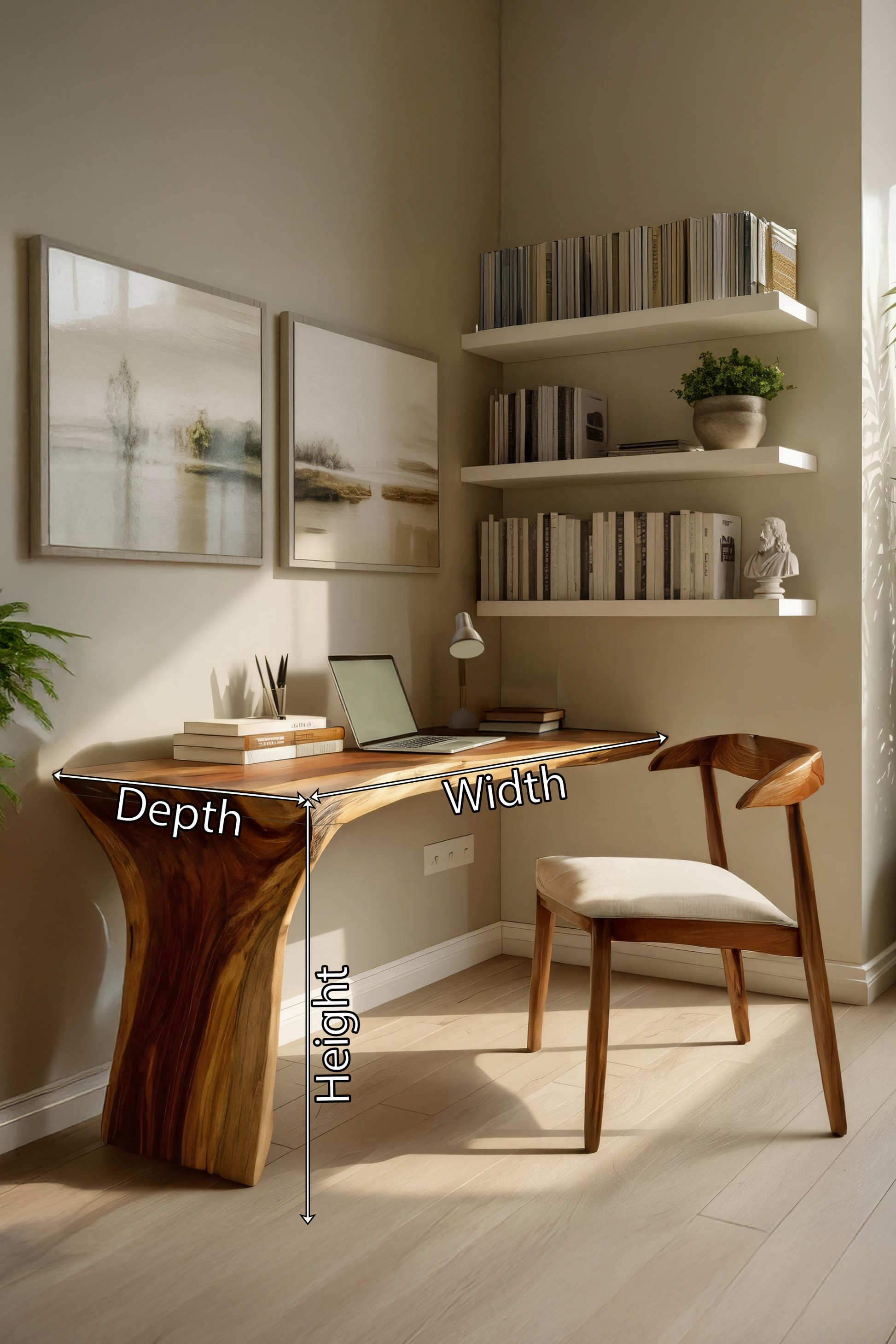 Bring organic texture and artisanal character to your workspace with the Handcrafted Live Edge Wood Desk For Home Studio Setup — a beautifully shaped piece that highlights natural edges, warm grain patterns, and a calm, functional layout. Its grounded design creates an inspiring setting for both creative work and everyday tasks.