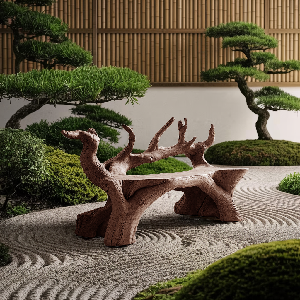 Designed for both indoor coziness and outdoor tranquility, the bench brings depth, warmth, and usefulness to any space. It works beautifully as a dramatic entry bench, a peaceful garden sculpture, or a welcoming seat on your porch. Optional features such as backrests or armrests can be added for enhanced style and comfort.