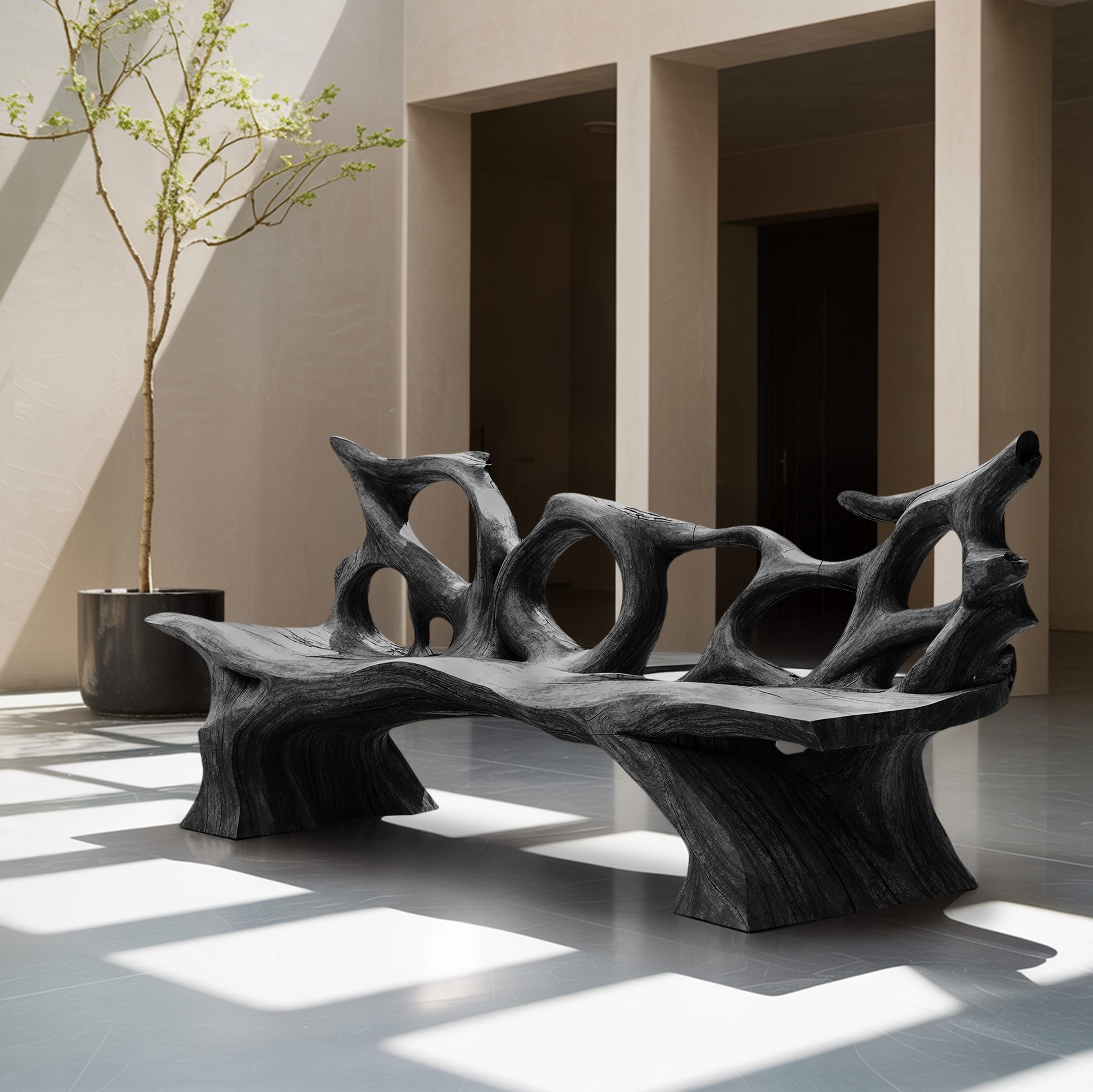 Designed for both indoor coziness and outdoor tranquility, the bench brings depth, warmth, and usefulness to any space. It works beautifully as a dramatic entry bench, a peaceful garden sculpture, or a welcoming seat on your porch. Optional features such as backrests or armrests can be added for enhanced style and comfort.