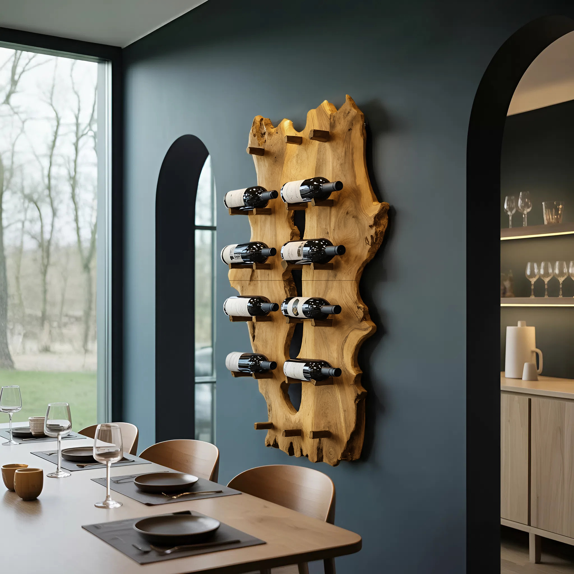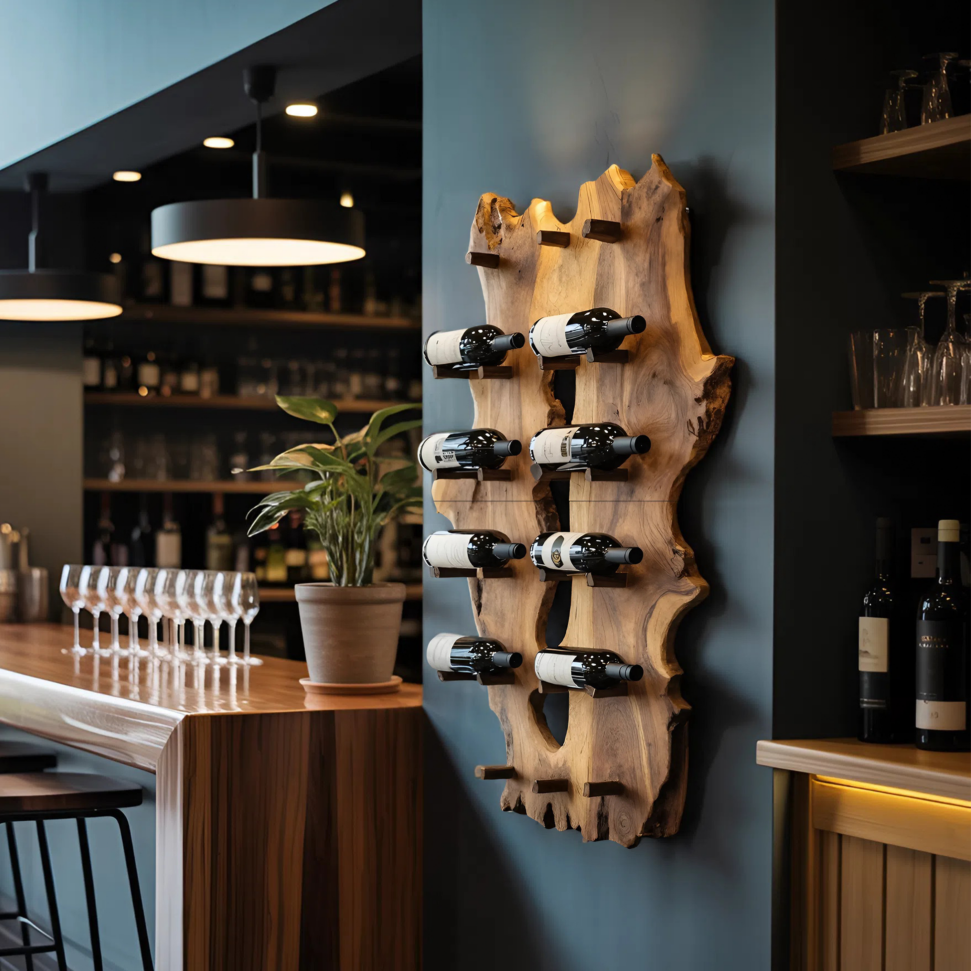 Bring timeless style and natural elegance to your home with the Mid Century Live Edge Wine Holder For Elegant Entryway Decor. Crafted from solid wood, this wine holder blends the clean, refined lines of mid-century design with the organic beauty of a live edge finish. Its warm tones and sculptural form create a sophisticated focal point, perfect for greeting guests with charm and character. Ideal for displaying your favorite bottles in an entryway, dining area, or living room, it adds both functional storage and an elevated artistic touch to your décor.
