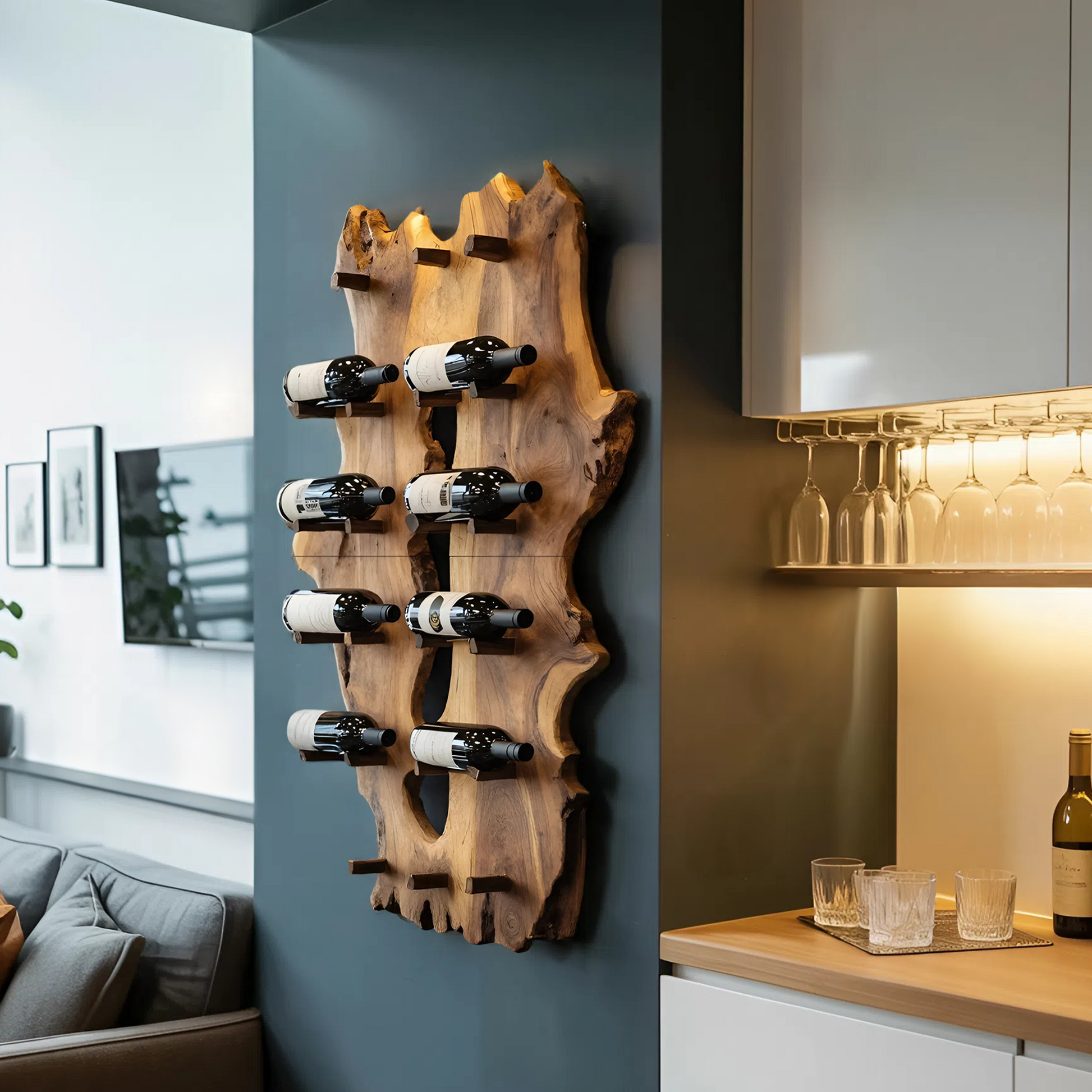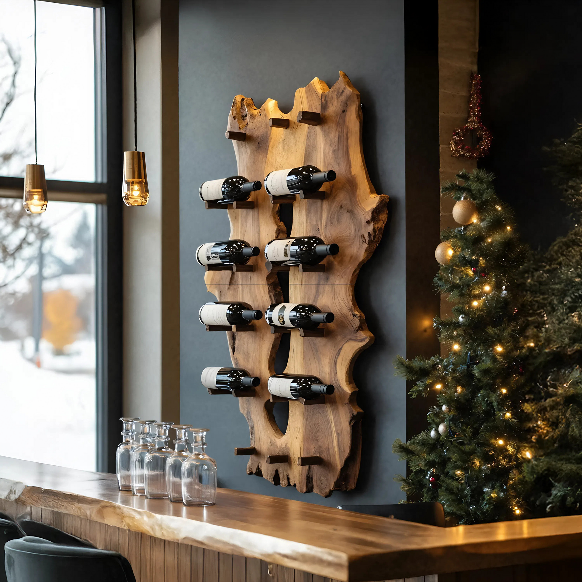 Mid Century Live Edge Wine Holder For Elegant Entryway Decor