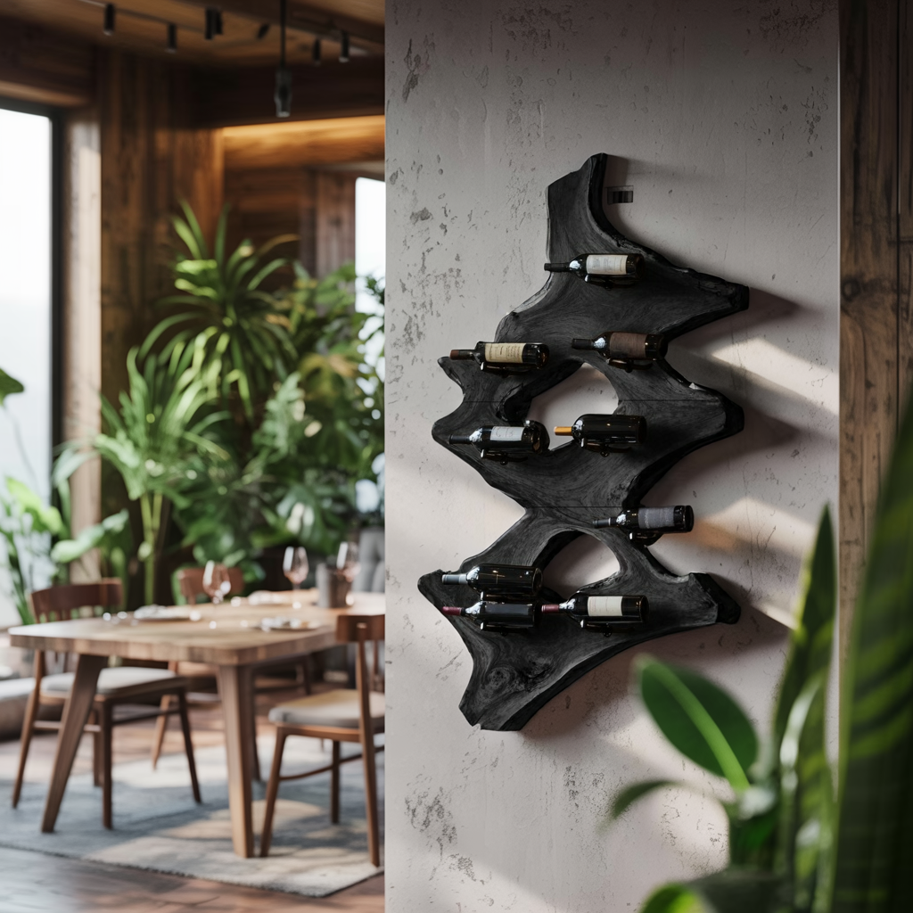Each wine holder is individually handmade from solid, sustainably sourced Monkeypod wood. The organic grain patterns, rustic tones, and subtle variations in texture make every piece entirely unique. Its artisanal finish preserves the natural warmth of the wood while offering a tactile, earthy appeal that feels both rustic and refined.
