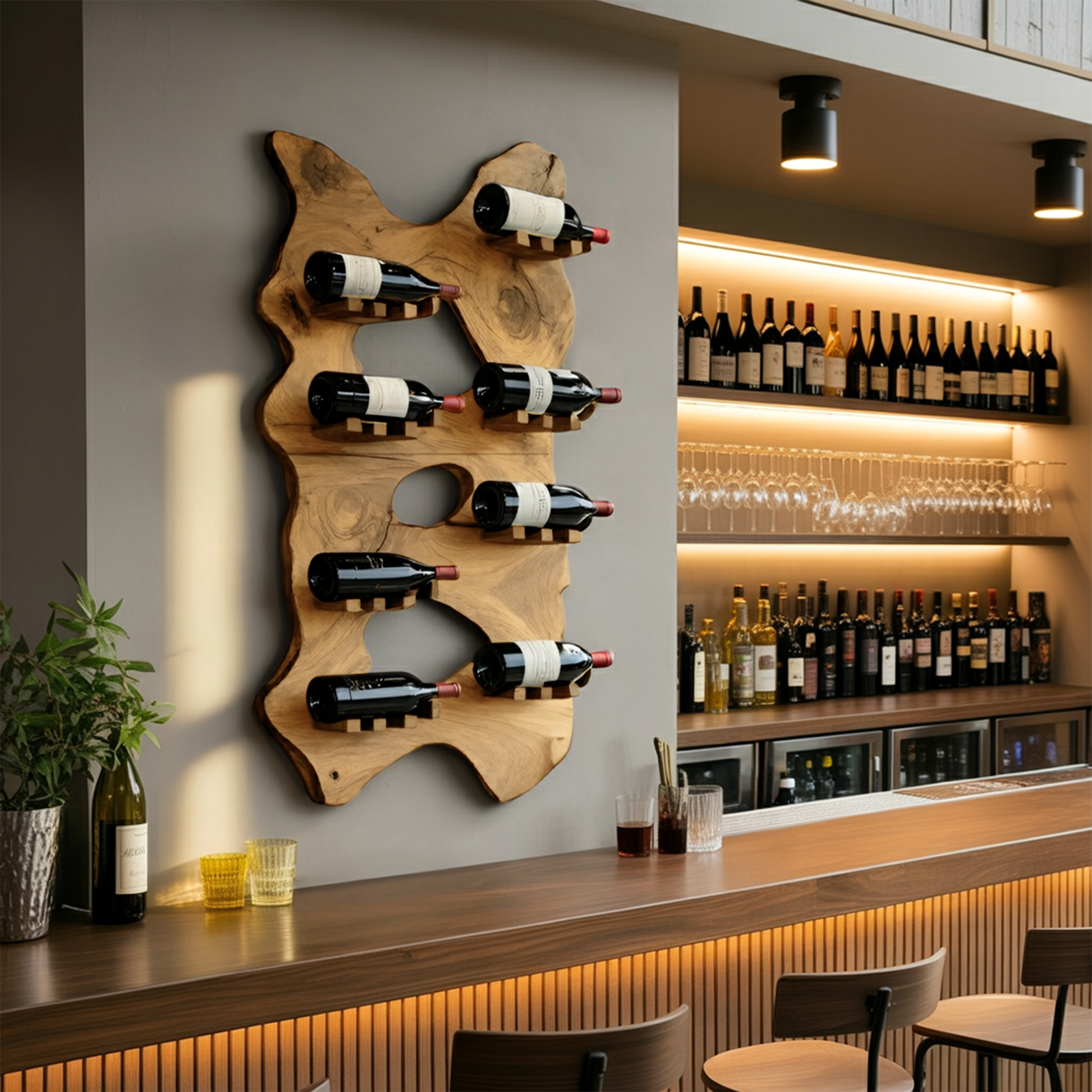 Mid Century Wooden Live Edge Wine Holder For Living Room Decor