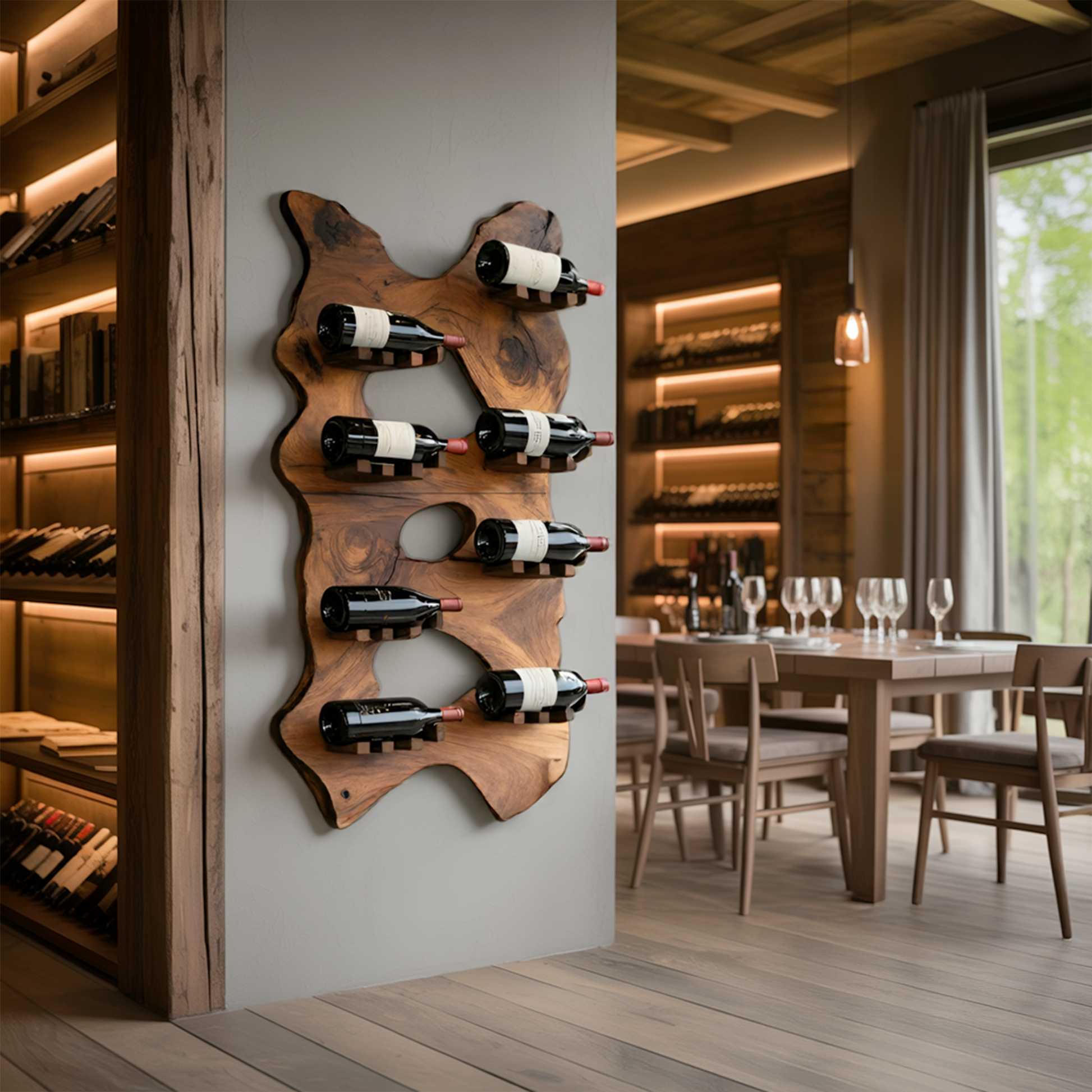 Add timeless style and organic beauty to your home with the Mid Century Wooden Live Edge Wine Holder For Living Room Decor. Crafted from solid wood, this wine holder combines the clean lines of mid-century design with the natural charm of a live edge finish. The rich grain and warm tones create a sophisticated accent that elevates any living room. Perfect for displaying your favorite bottles with both function and artistry, it brings a refined, nature-inspired touch to your décor.