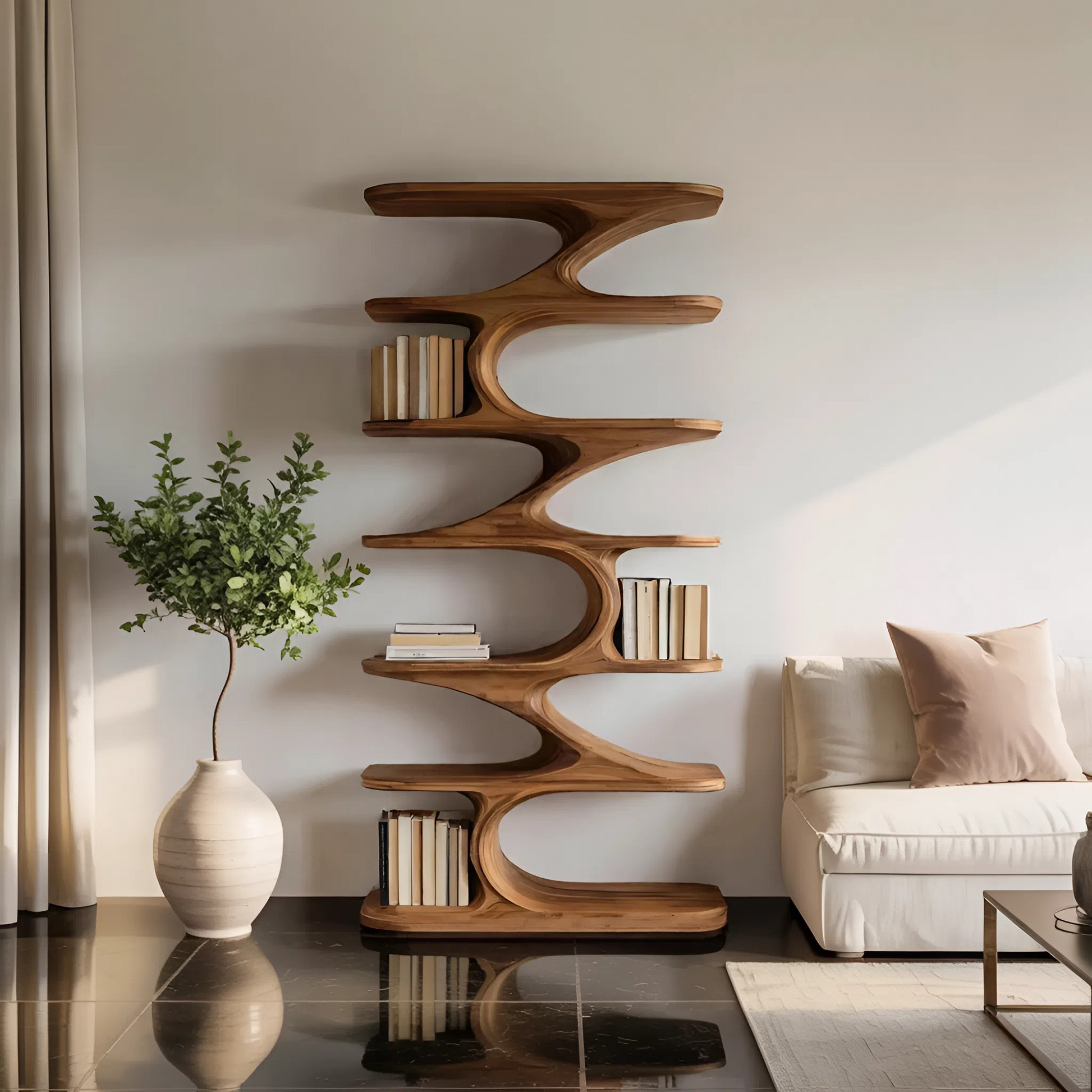 Elevate your interior with our Modern Organic Curved Bookshelf For Living Room, a sculptural storage piece that blends artistry with functionality. Designed with flowing contours and smooth transitions, it turns your book collection into a refined visual display while adding movement and warmth to your space.