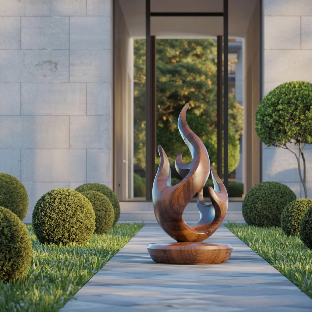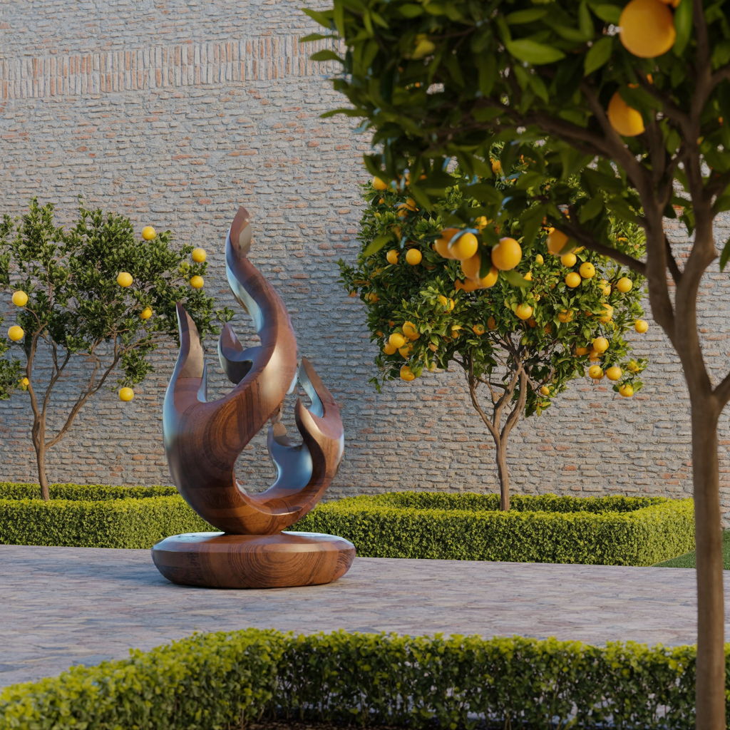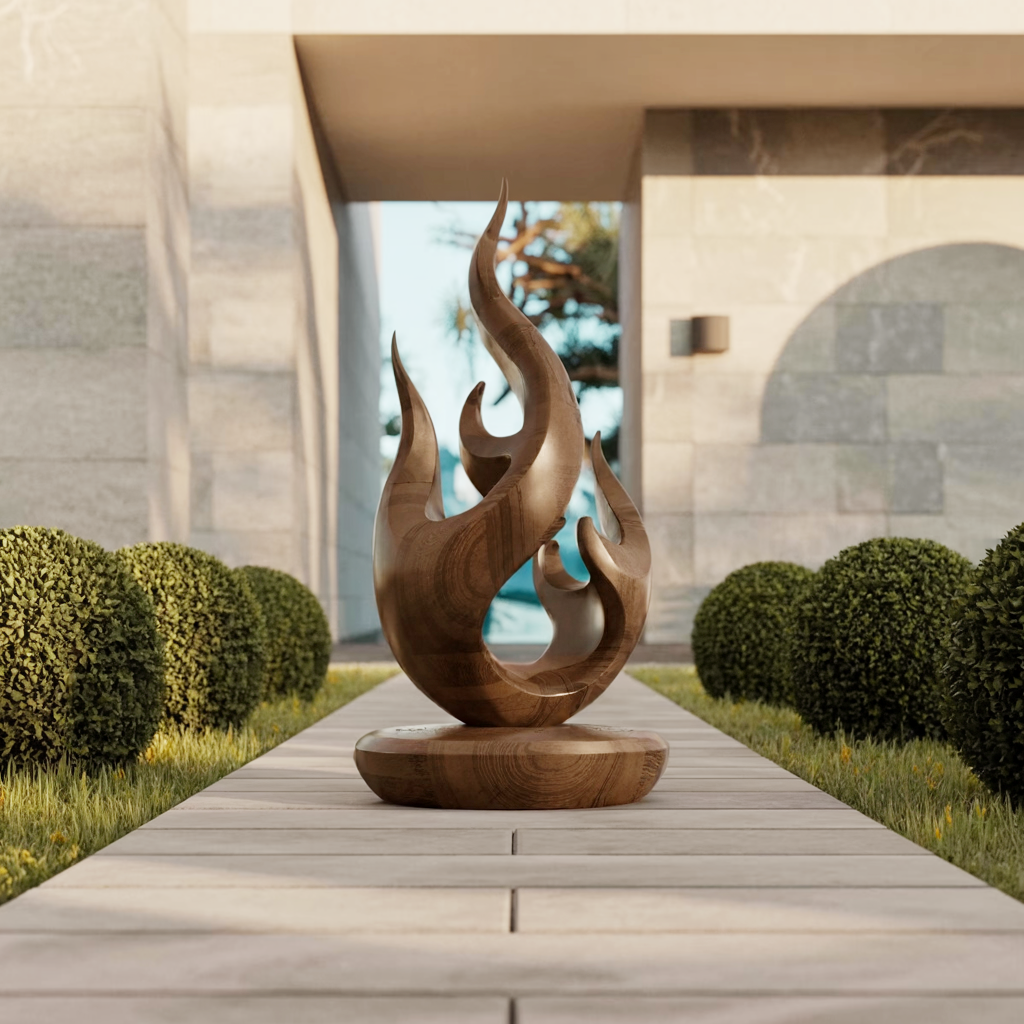 Inspired by the flowing movement of flames and the organic forms found in nature, this abstract wooden sculpture is more than just décor - it’s a visual statement. Its fluid, twisting curves evoke motion and harmony, creating a sense of energy that subtly transforms any space. Whether used as a focal point or an accent piece, it brings life and depth to minimalist, modern, and contemporary interiors.