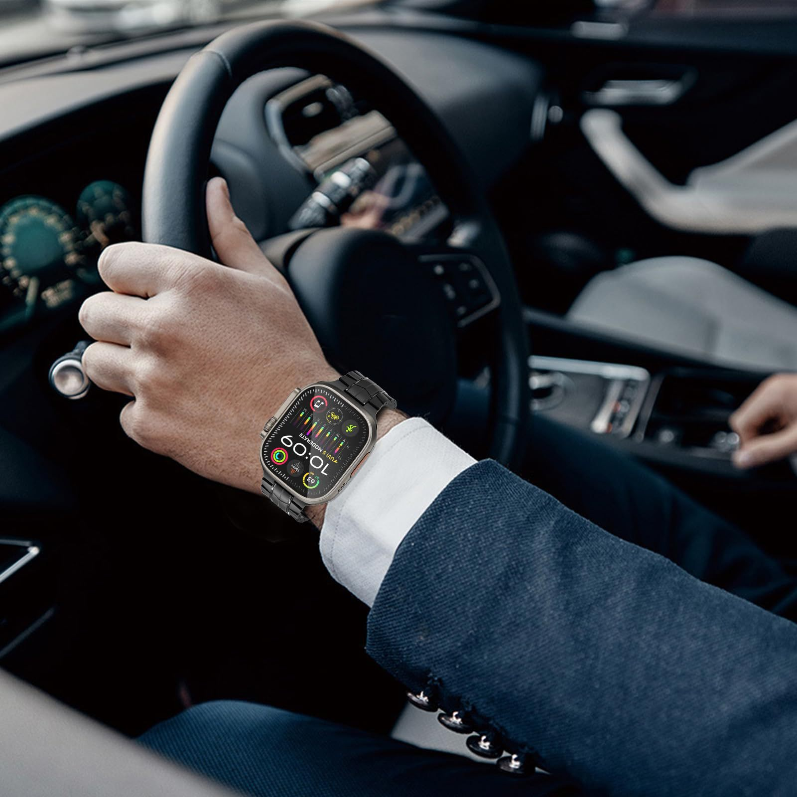 Featuring interlocking, beveled-edge links, this premium stainless steel band creates a seamless, sculptural aesthetic that complements your Apple Watch with a striking, contemporary edge. It’s the ultimate statement piece that transforms your smartwatch into a luxury timepiece.